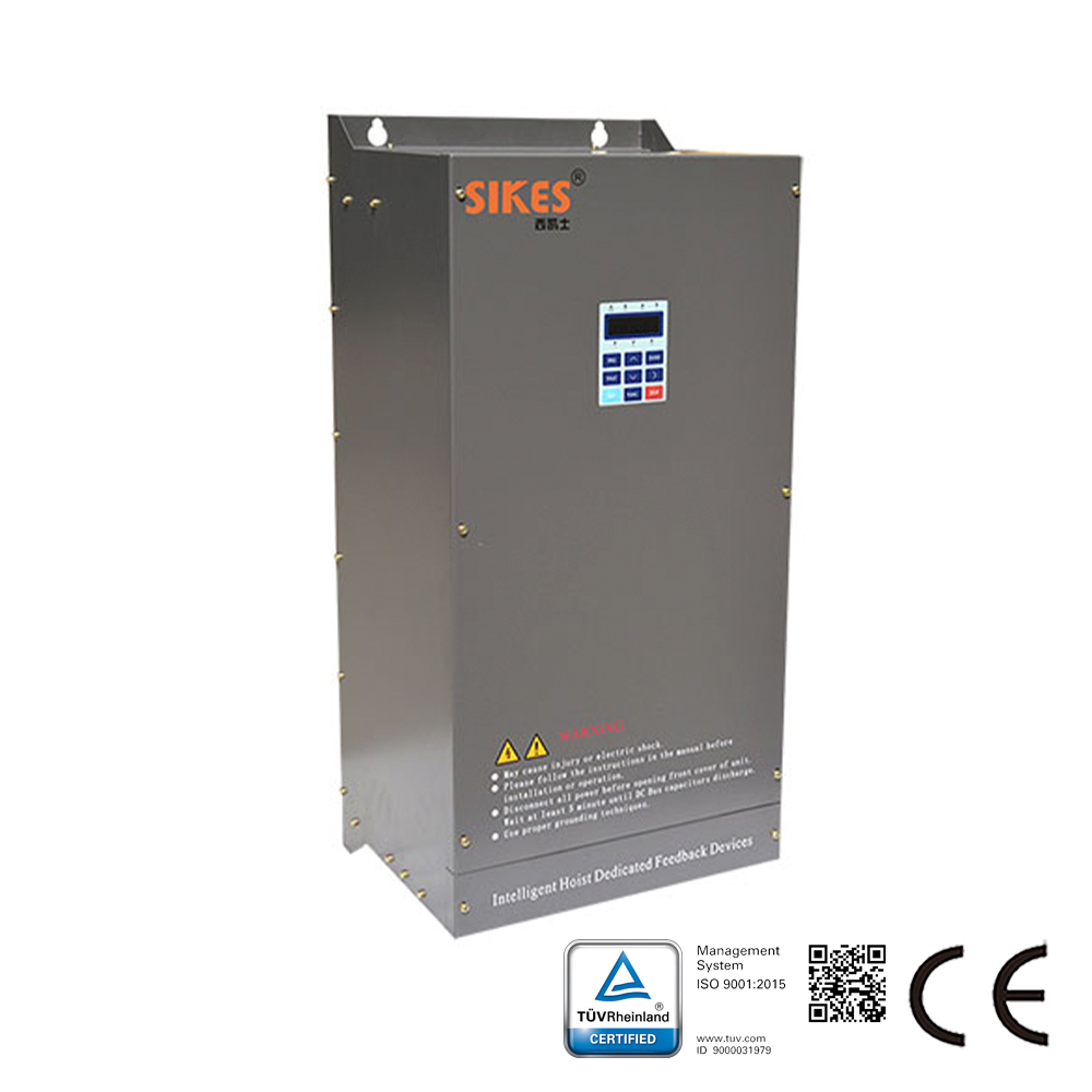 This series adopts microprocessor chip with fast respond, high-accuracy process control,making inverter operating in four-quadrant, continuously feedback,and regenerative braking frequency below 40%. Electric regeneration efficiency up to 97%. Using SPWM modulation to greatly reduce distinctive peaks of current and form perfect sine wave current, input side current THD lower than 5%, power factor up to 99%.It can prevent power grid flowing back, overheating, overcurrent, out of phase, undervoltage,and short circuit.